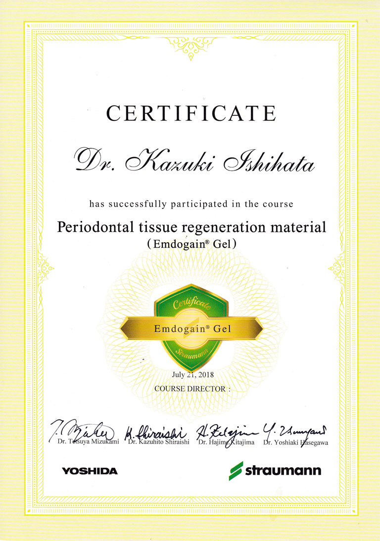 - エムドゲイン(再生療法)セミナー修了